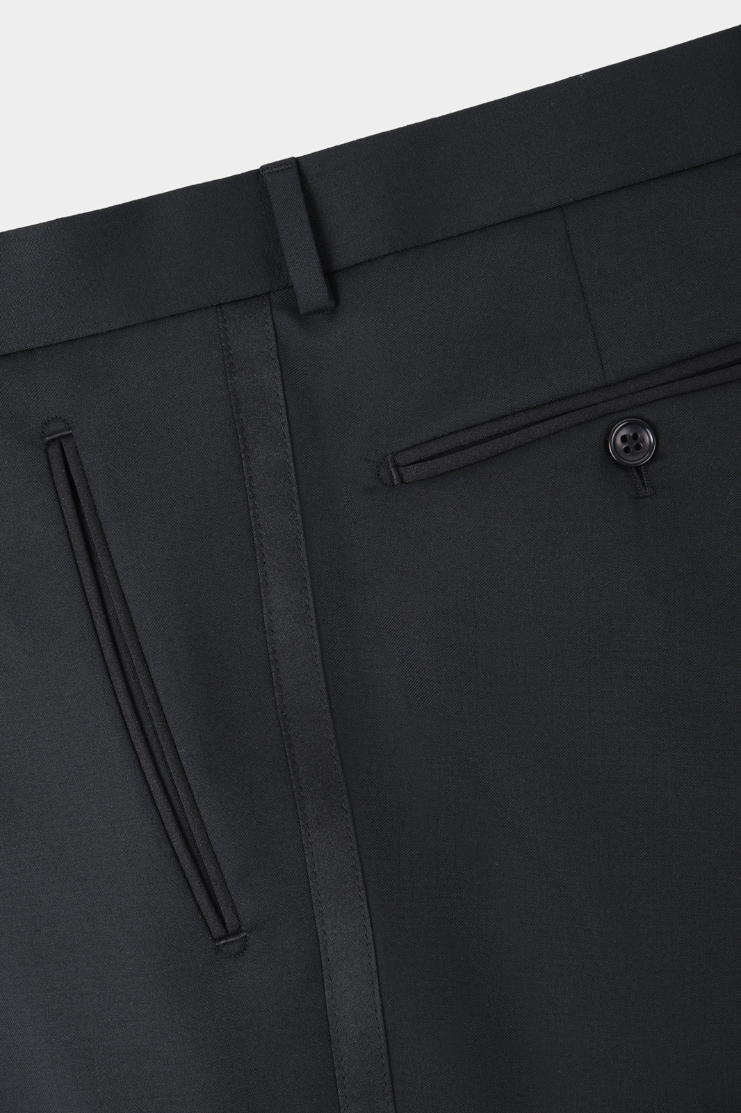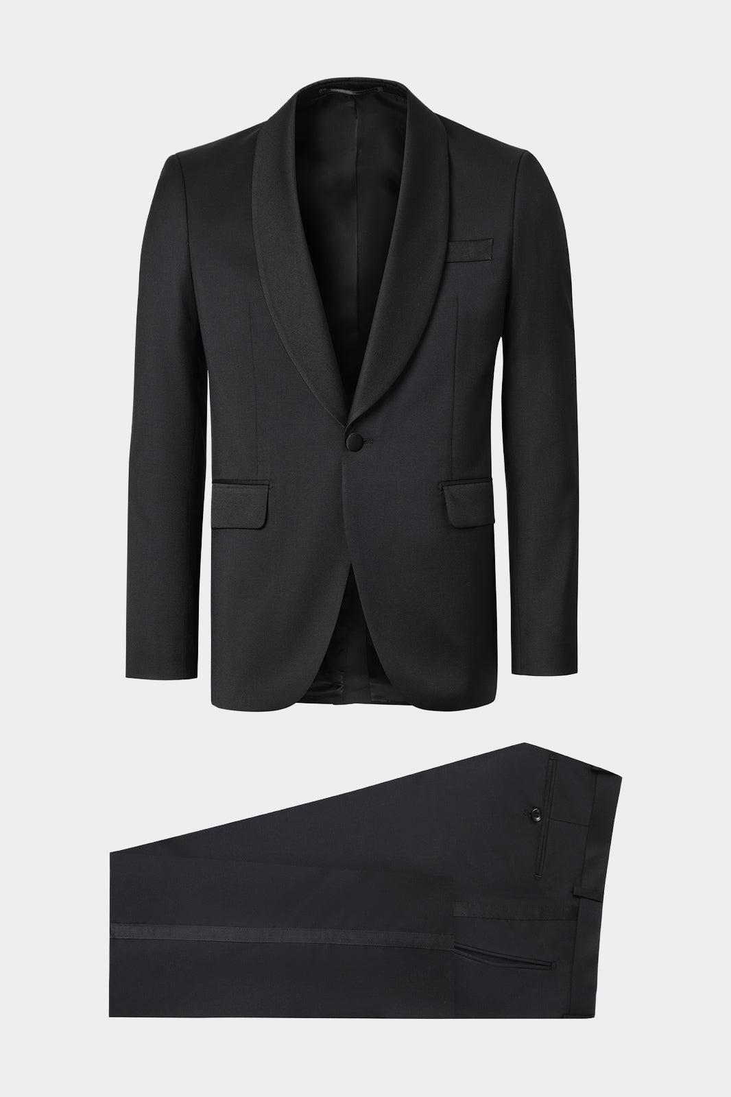 Notre smoking confectionné en laine stretch, offre un tombé élégant et un confort haut de gamme.