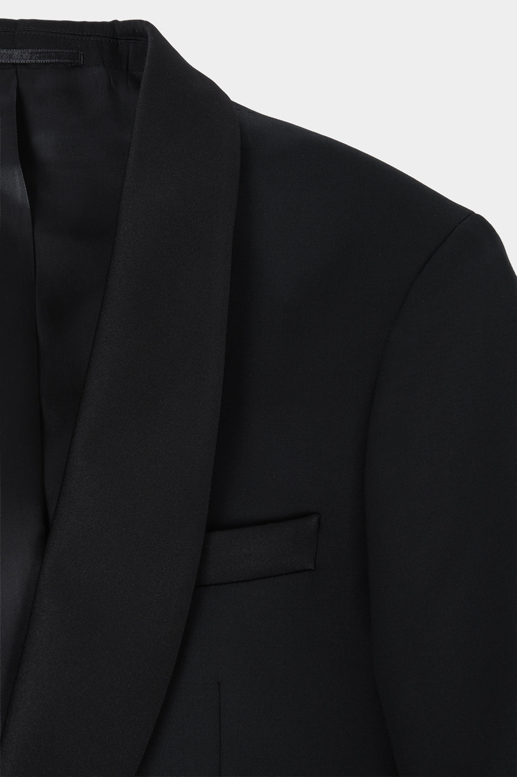 Son col châle apporte une touche de sophistication intemporelle. Les poches à rabat recouvertes de satin de soie soulignent le raffinement du modèle.
