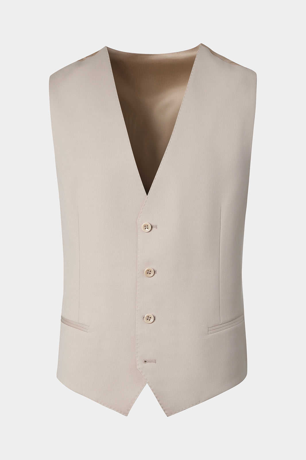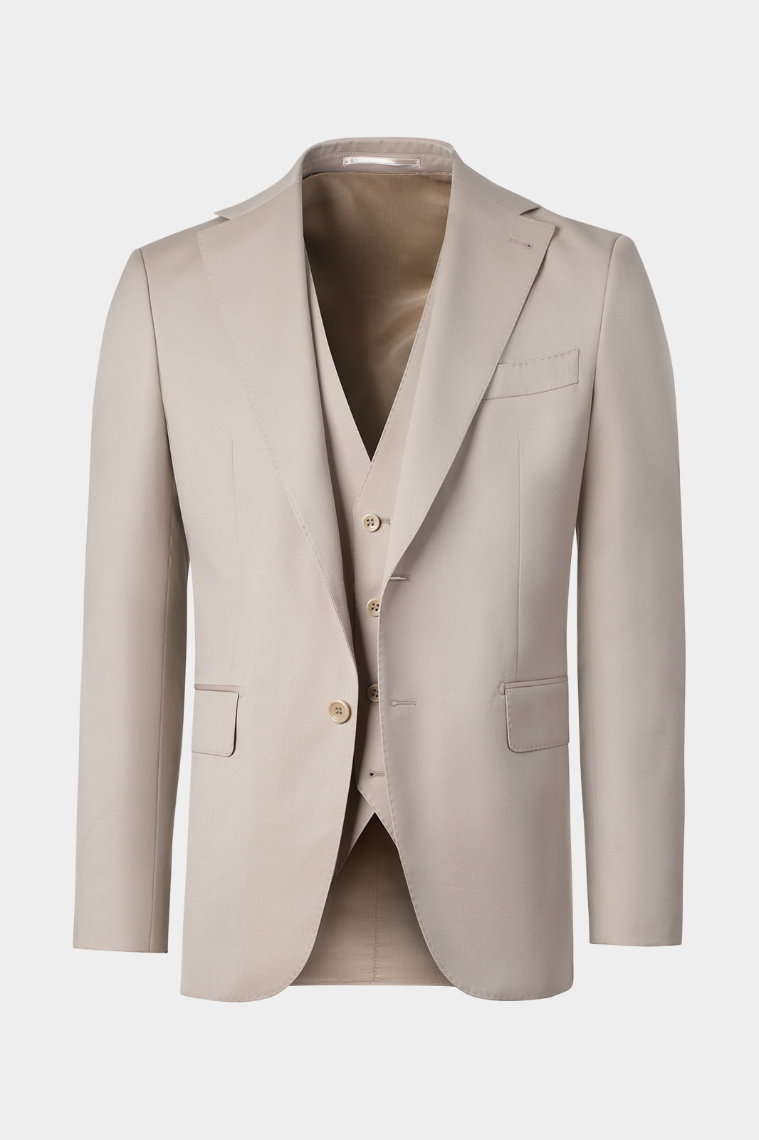 Découvrez notre costume 3 pièces coupe cintrée en laine de chez Canonico. Il est composé d'une veste revers larges à deux boutons avec épaulette et doublée avec les poches à rabat sur le devant, d'un gilet et d'un pantalon traditionnel.