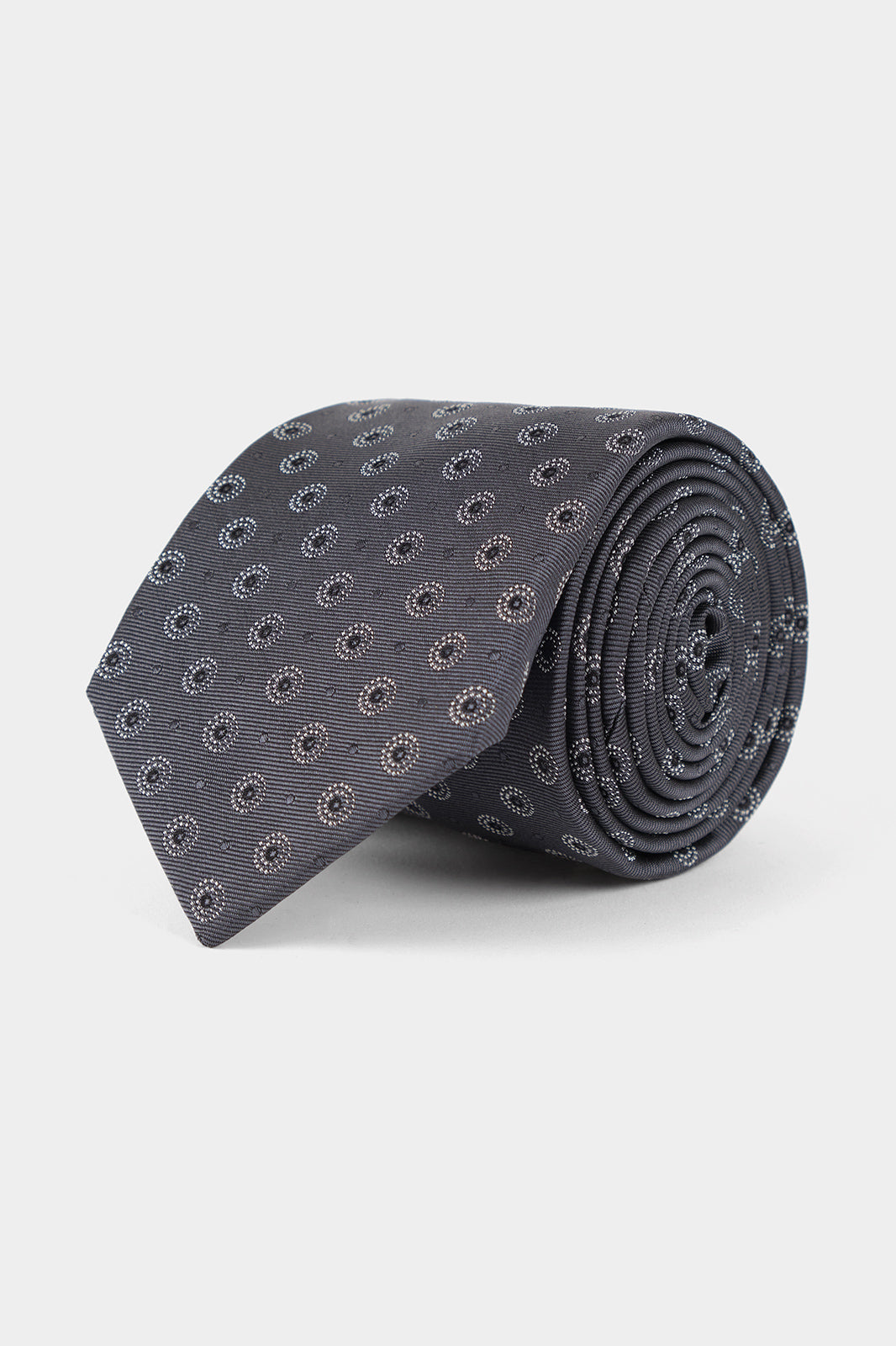 Cravate 100% soie - Gris foncé à motif cercle