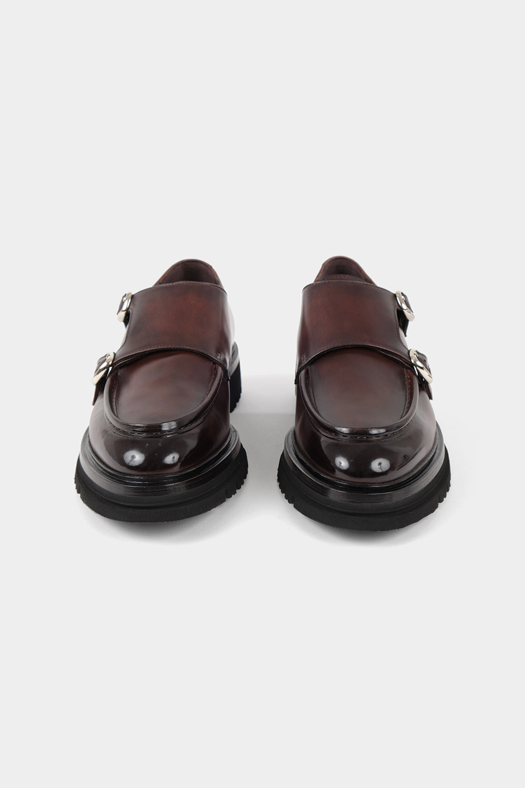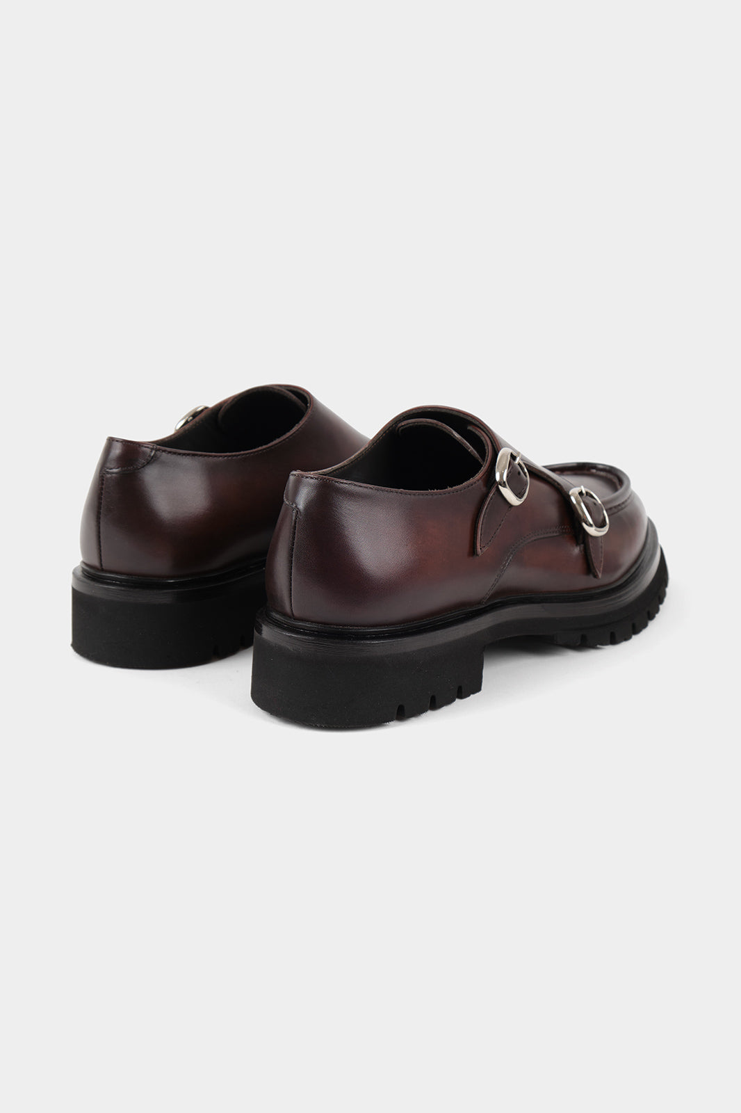 Élégantes et robustes, ces chaussures double boucle en cuir marron associent design moderne et confort durable. Leur semelle crantée et leurs boucles argentées apportent une touche d'élégance à toutes vos tenues.